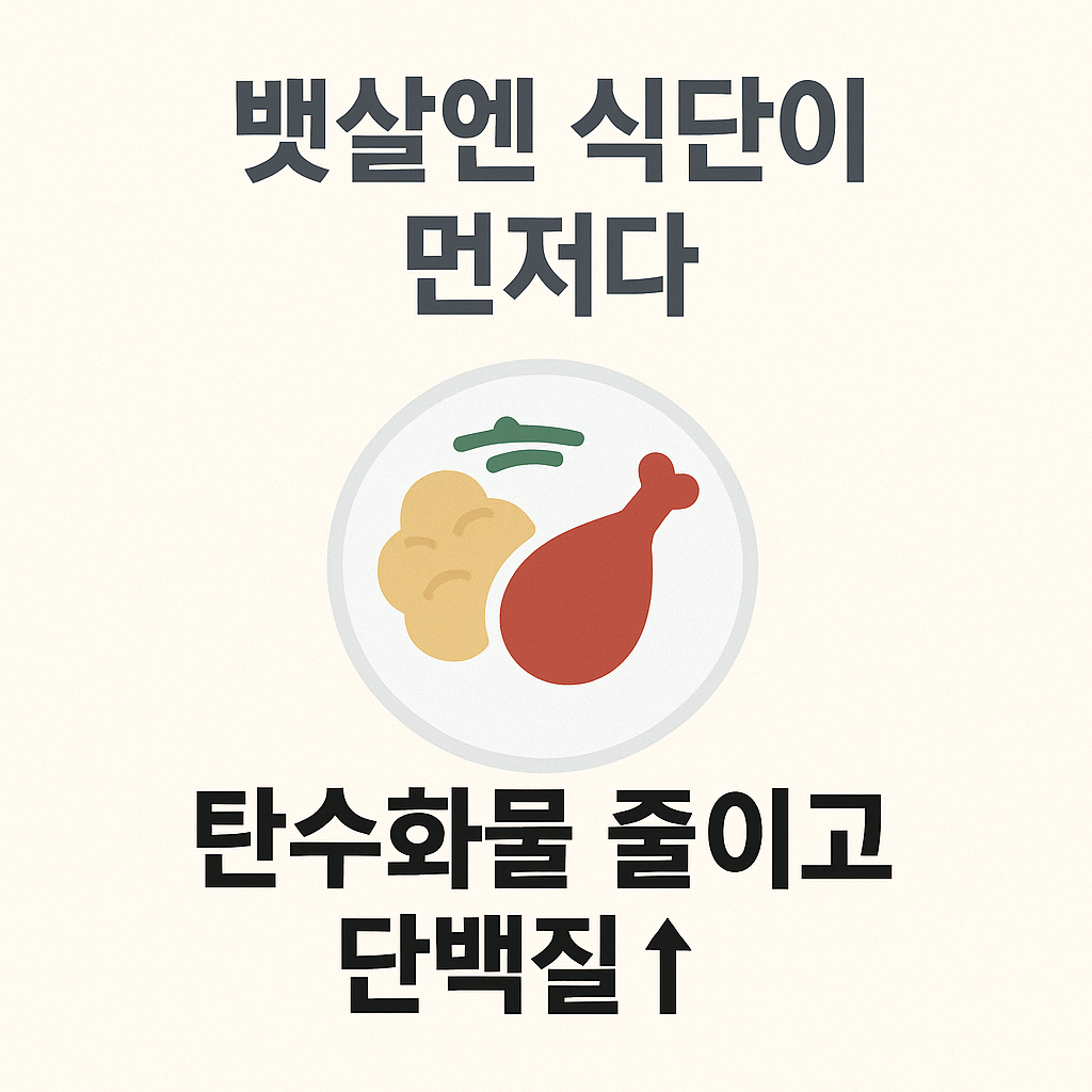 식단을 바꿀 땐 무리한 단식보다는 일상에서 가능한 한 끼씩 조절하는 것이 좋습니다. 가공식품과 밀가루, 단순당 섭취를 줄이는 것만으로도 뱃살 빼기에 큰 도움이 됩니다.