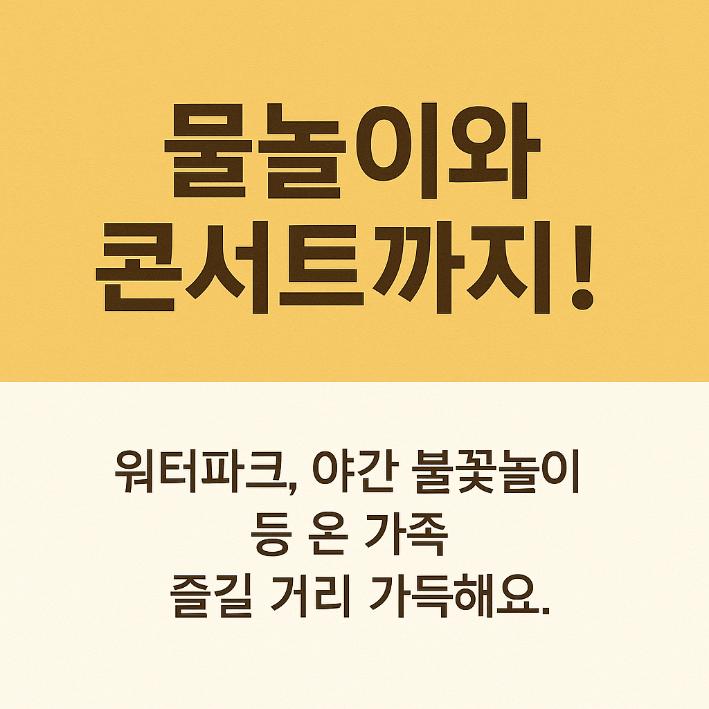 | 어린이 워터파크 | 에어바운스·워터슬라이드 등 놀이시설 | 어린이·가족 |