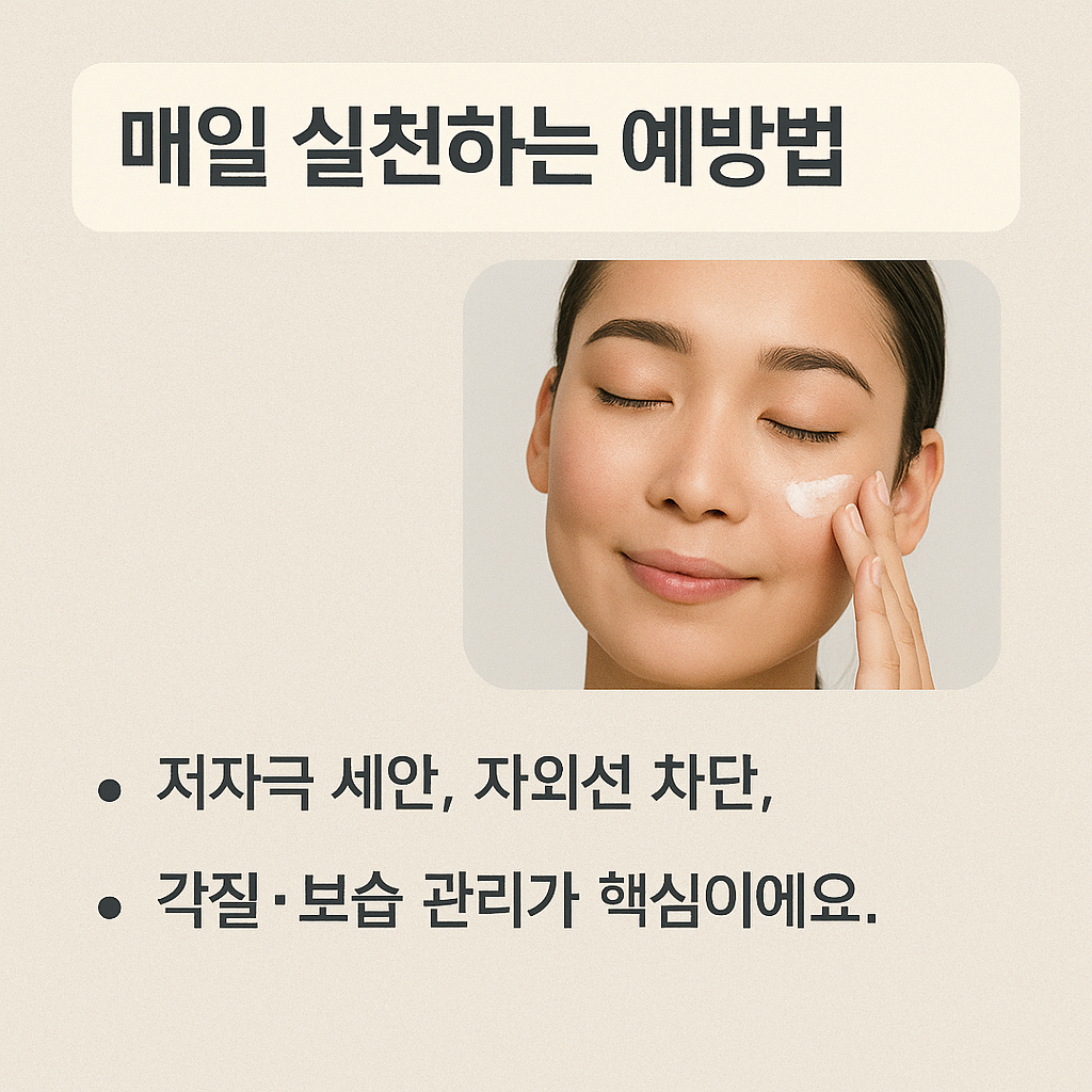 - 자외선 차단: 매일 자외선 차단제를 바르고 외부 자극 최소화