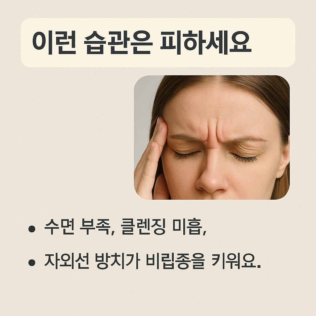 비립종 생기는 이유를 이해했다면, 이제 중요한 것은 예방입니다. 비립종은 한 번 생기면 자연적으로 사라지기 어렵고 반복적으로 재발할 수 있기 때문에, 미리 예방하는 것이 가장 효과적입니다. 특히 민감성 피부나 얇은 눈가 피부는 더 쉽게 생기므로 평소 관리 습관이 중요합니다.