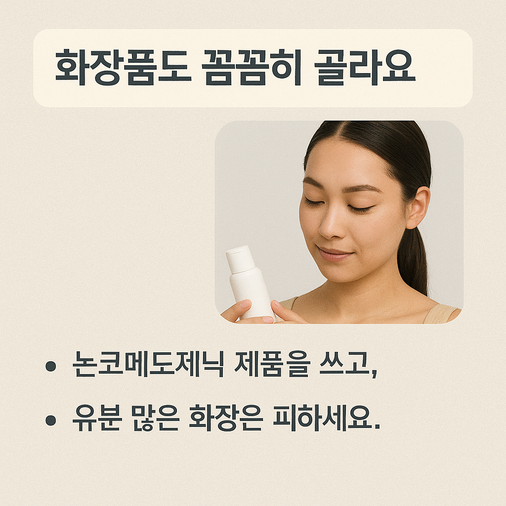 - 화장품 성분 점검: 논코메도제닉 여부 확인 후 사용