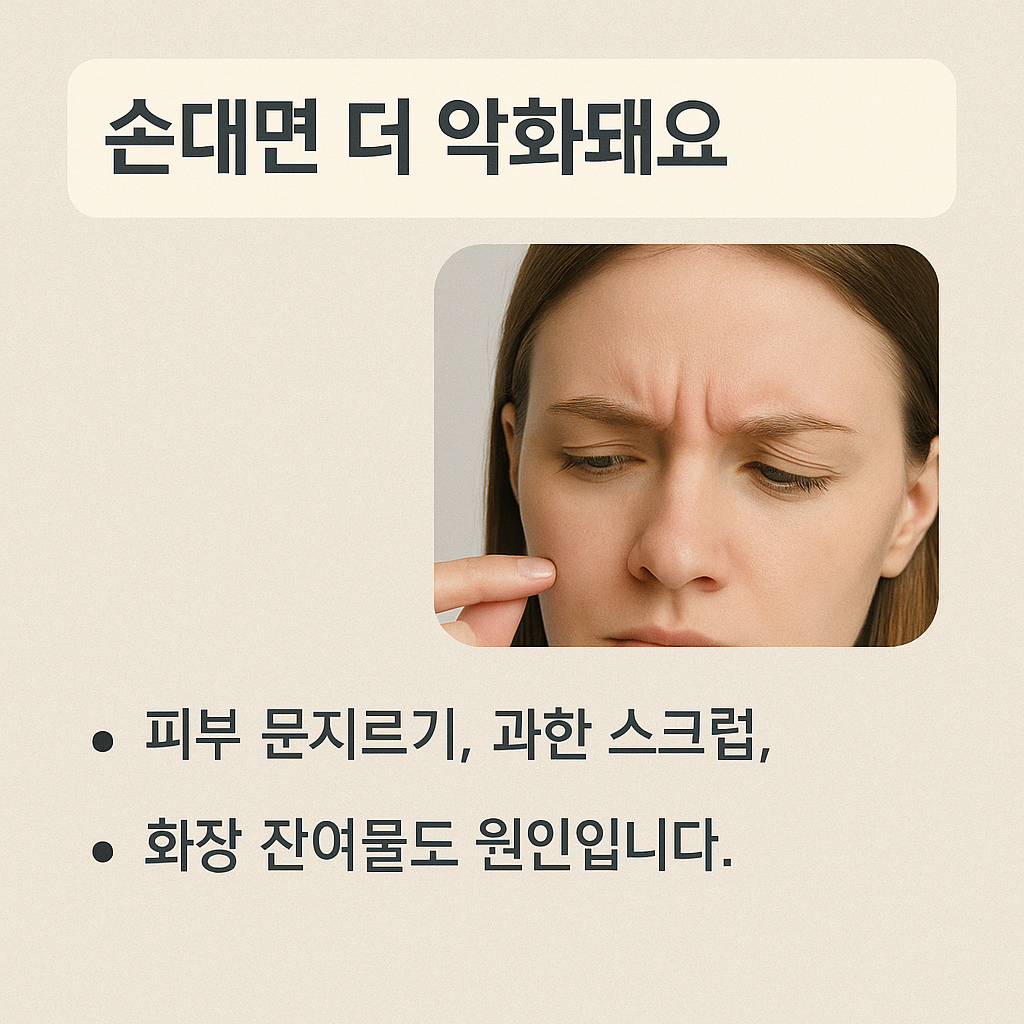 | 세안 불량 | 화장품·노폐물 잔여 → 모공 폐쇄 |