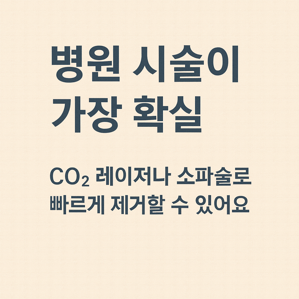 | 병원 시술 | 소파술, 전기소작술, CO₂ 레이저 등으로 빠르고 정확하게 제거 |