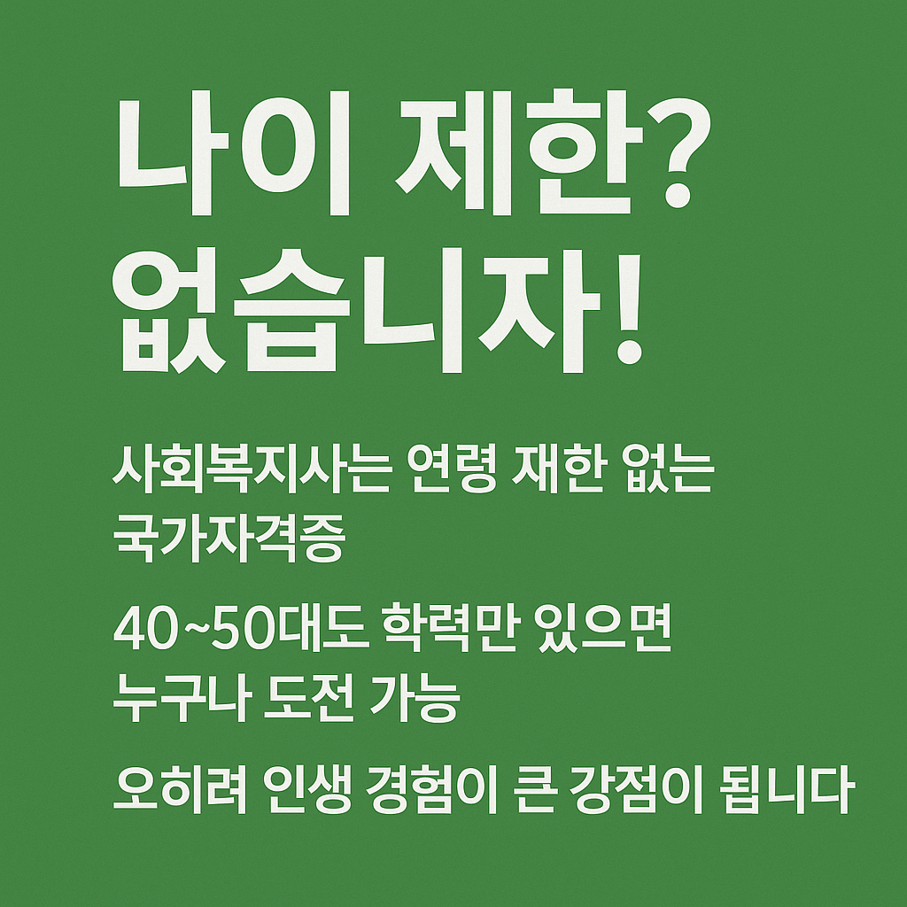 사회복지사 자격증은 나이와 상관없이 누구나 취득할 수 있는 국가공인 자격입니다. 특히 40대와 50대 중장년층에게는 재취업, 노후 준비, 인생 2막 설계를 위한 실질적인 대안으로 각광받고 있습니다. 과거에는 전공자나 복지업계 종사자 중심이었지만, 현재는 학점은행제, 온라인 수업, 유연한 실습 제도 덕분에 누구나 도전할 수 있는 열린 구조로 바뀌었습니다.