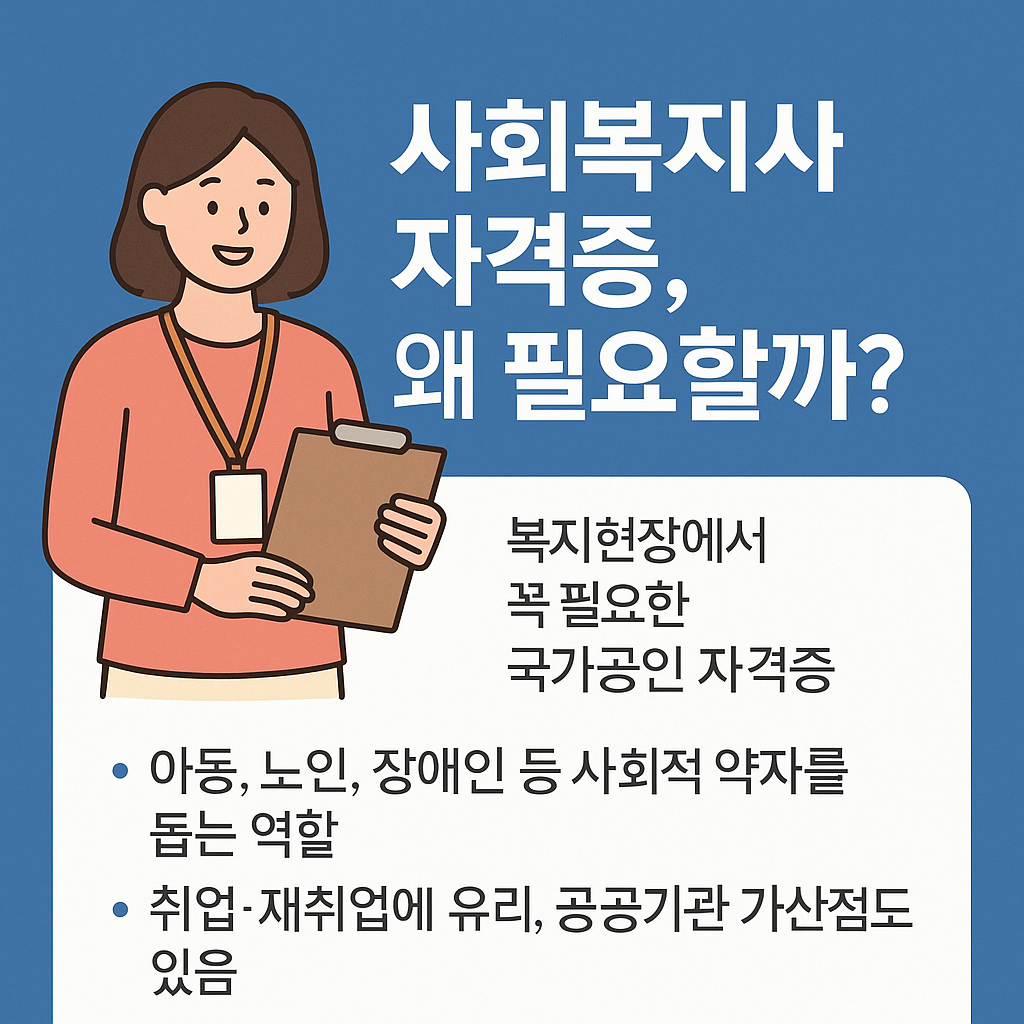 사회복지사 자격증은 노인복지, 아동복지, 사회서비스 분야 취업에 강력한 무기입니다. 특히 40대, 50대 중장년층도 충분히 도전 가능한 자격으로, 학력이나 경력에 따라 체계적으로 준비하면 1년 이내 취득도 가능합니다. 본 글에서는 2025년 기준 사회복지사 자격증 취득방법을 상세히 안내합니다.