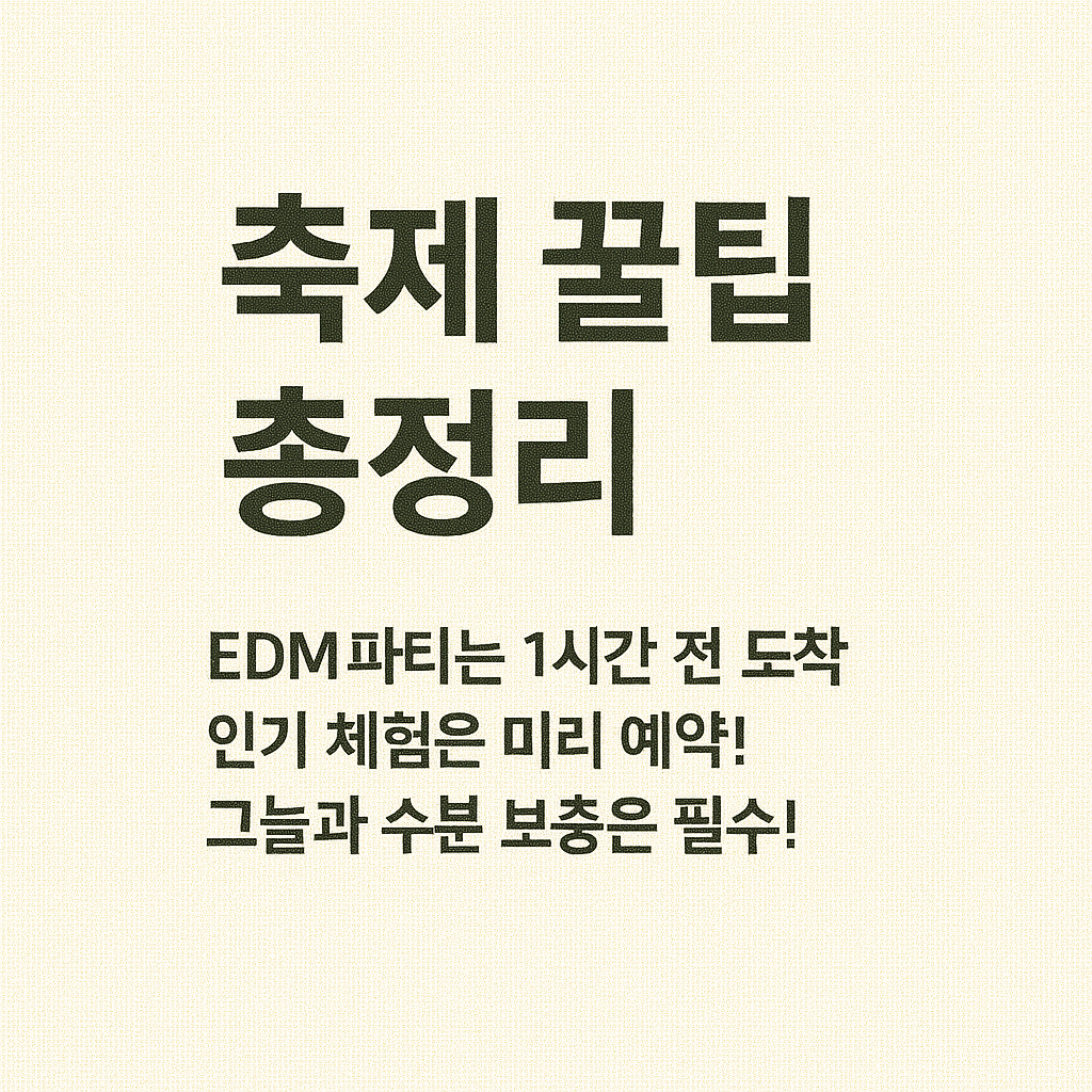 TIP: 축제장에는 편의점, 음식 부스, 음수대 등이 마련될 예정이지만, 붐비는 시간에는 줄이 길어지므로 미리 준비하는 것이 훨씬 효율적입니다.