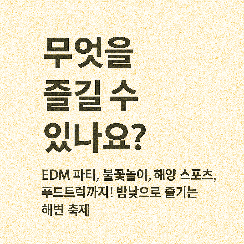 교통과 숙박을 미리 계획하고, 축제장 내 프로그램 일정 및 준비물을 꼼꼼히 챙기면 무더위를 잊을 만큼 신나는 여름이 보장됩니다. 특히 야경 속 불꽃놀이와 해양레포츠, 주변 관광지까지 더하면 단순한 ‘하루 여행’이 아닌 ‘완성도 높은 여름 여행’으로 승화될 수 있습니다.