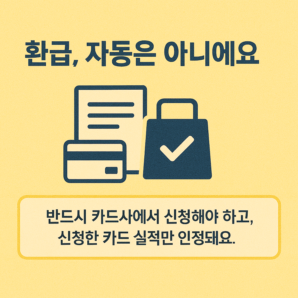 - 신청 이후에는 카드사 앱 또는 홈페이지에서 실적 확인 및 환급 예정 금액을 실시간으로 확인할 수 있습니다.