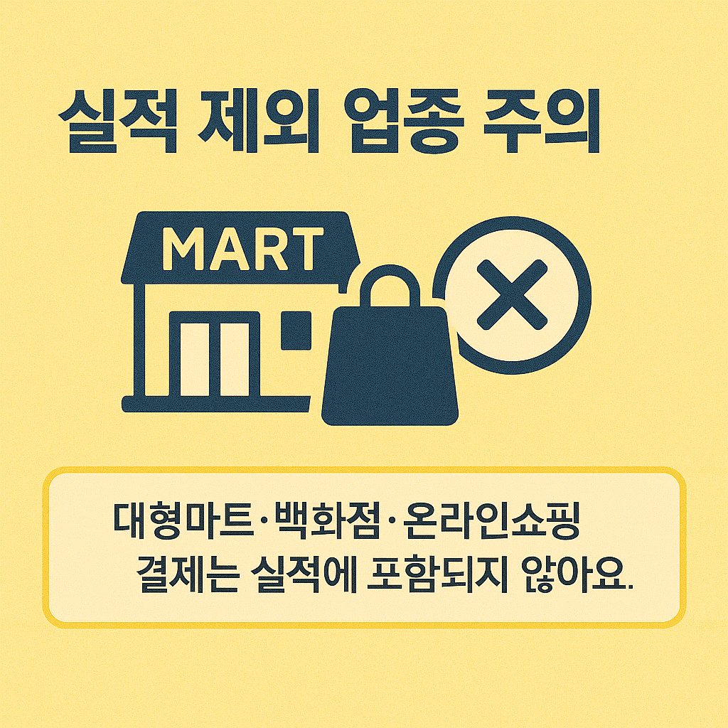| 제외 업종 | 대형마트, 백화점, 유흥업소, 온라인 쇼핑몰 등 |