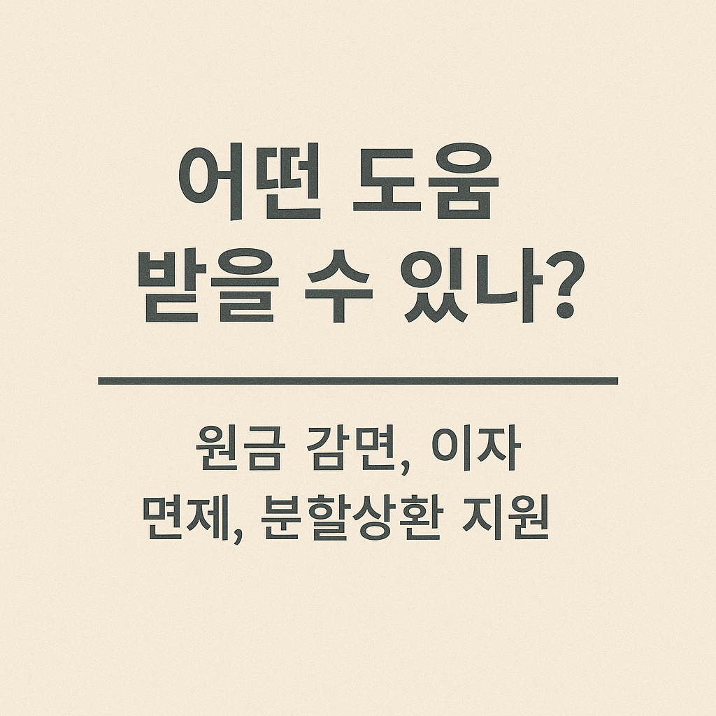 - 이자 감면: 고금리 대출 이자 전액 면제 또는 대폭 인하