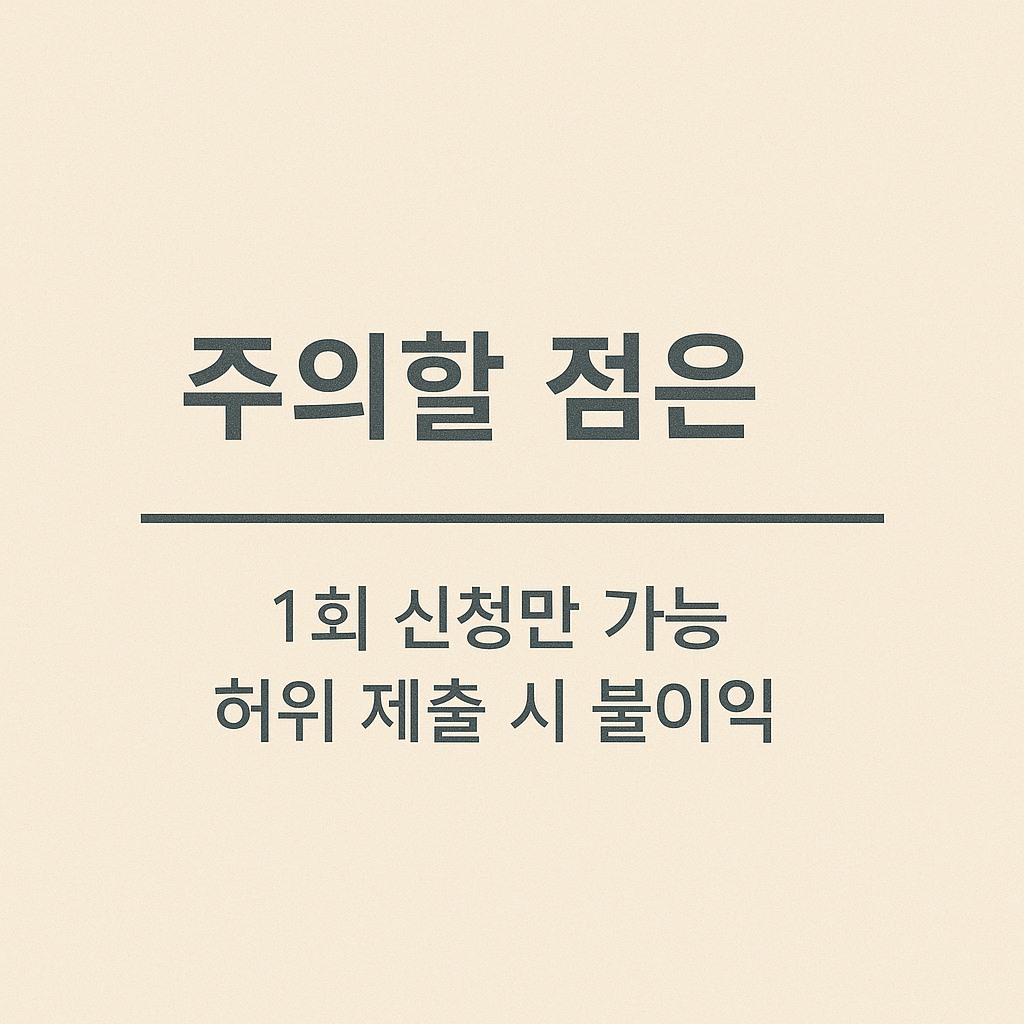 - 1회 신청 원칙: 실수로 취소하거나 서류 미비로 반려될 경우, 최소 3개월 재신청 제한