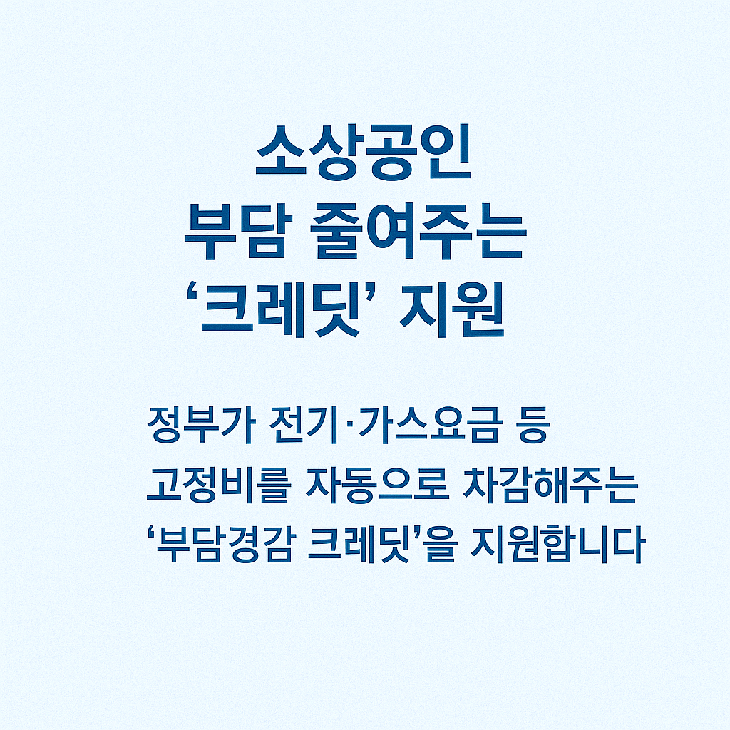 소상공인 부담경감 크레딧은 2025년 소상공인을 위한 대표 정책 중 하나로, 공공요금 부담을 실질적으로 줄여주는 만큼 자격이 되는 사업자는 꼭 신청해 활용하시길 바랍니다.