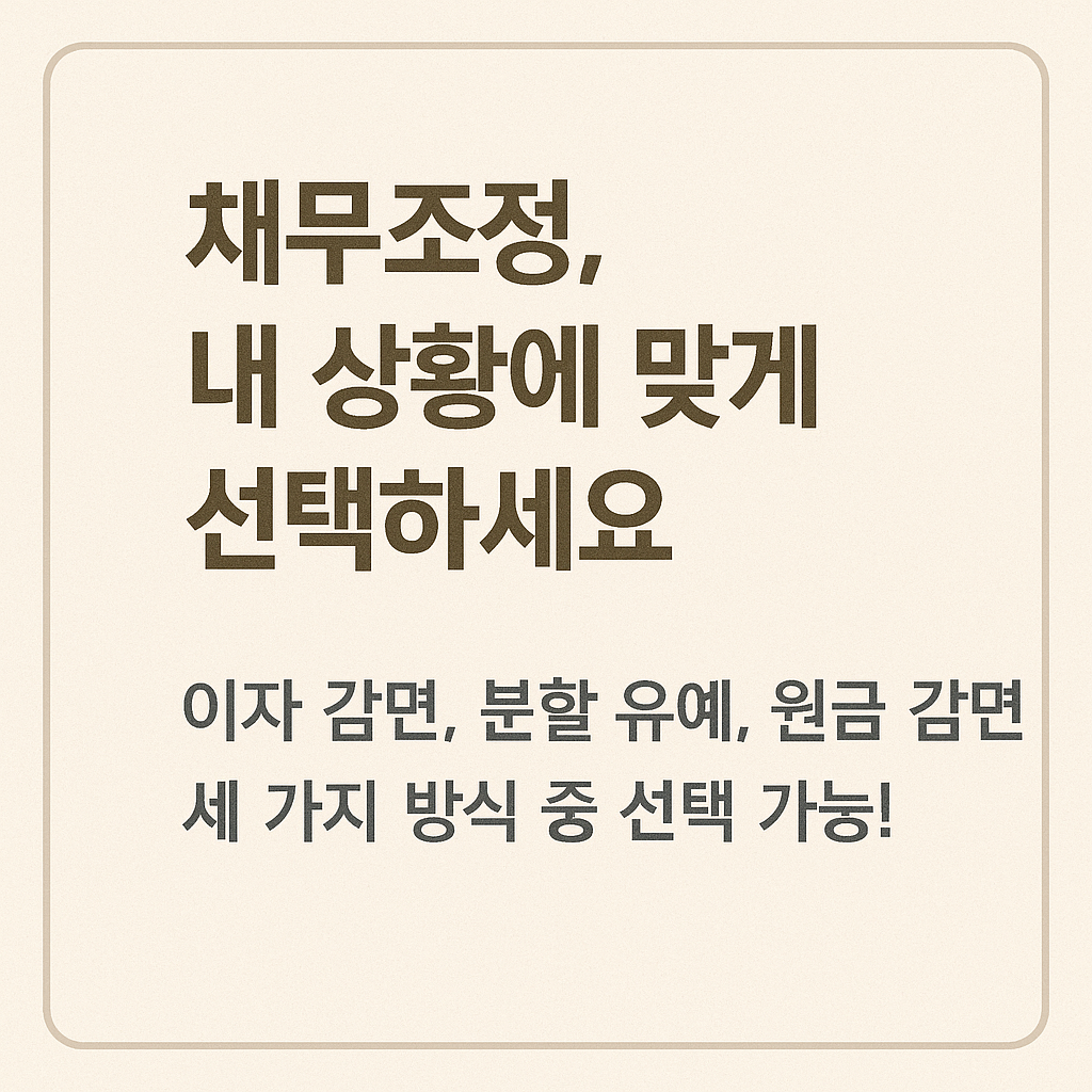 - 다양한 조정 유형: 이자 감면, 원금 감면, 분할 유예 등 상황별 선택 가능