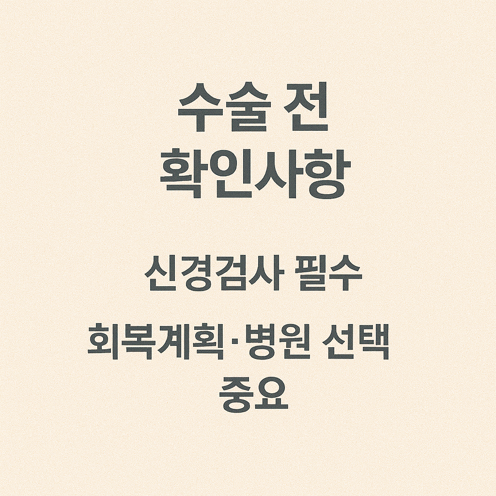 수술은 단지 ‘빠르게 끝내는’ 치료가 아닌, 신경 기능 회복이라는 긴 흐름의 첫 출발점입니다. 수술 전후로 물리치료, 자가 운동, 손 사용 제한 등 사후 관리가 중요하며 정확한 병원 선택과 의료진 상담을 통해 불필요한 재수술이나 후유증을 피해야 합니다.