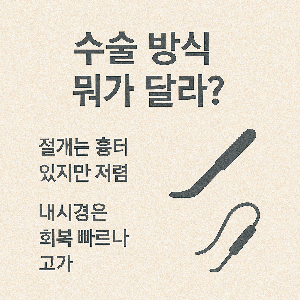 - 수술 방식 선택: 비용·흉터·회복 기간을 고려해 절개/내시경 선택