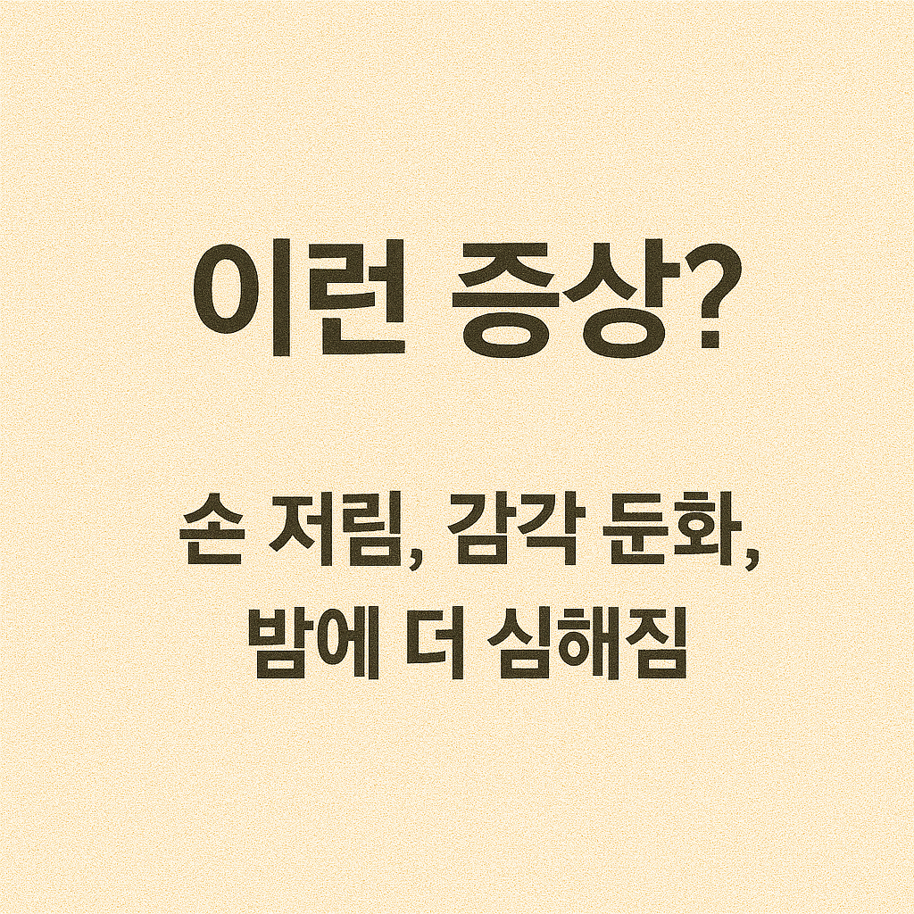 - 조기 증상: 손 저림, 밤에 깨는 증상, 감각 저하 등을 가볍게 넘기지 말 것
