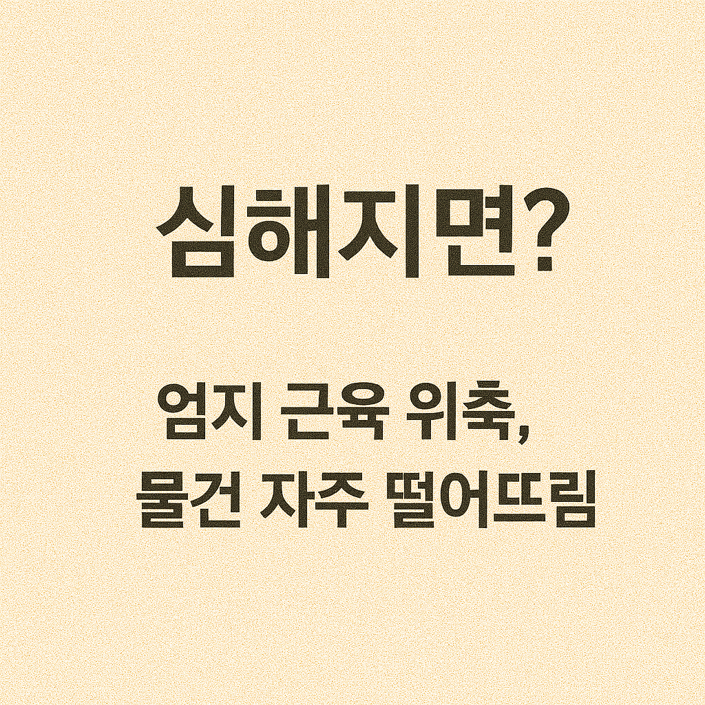 | 엄지손가락 쪽에 힘이 빠지나요? | 엄지 근육 위축의 초기 신호일 수 있음 |