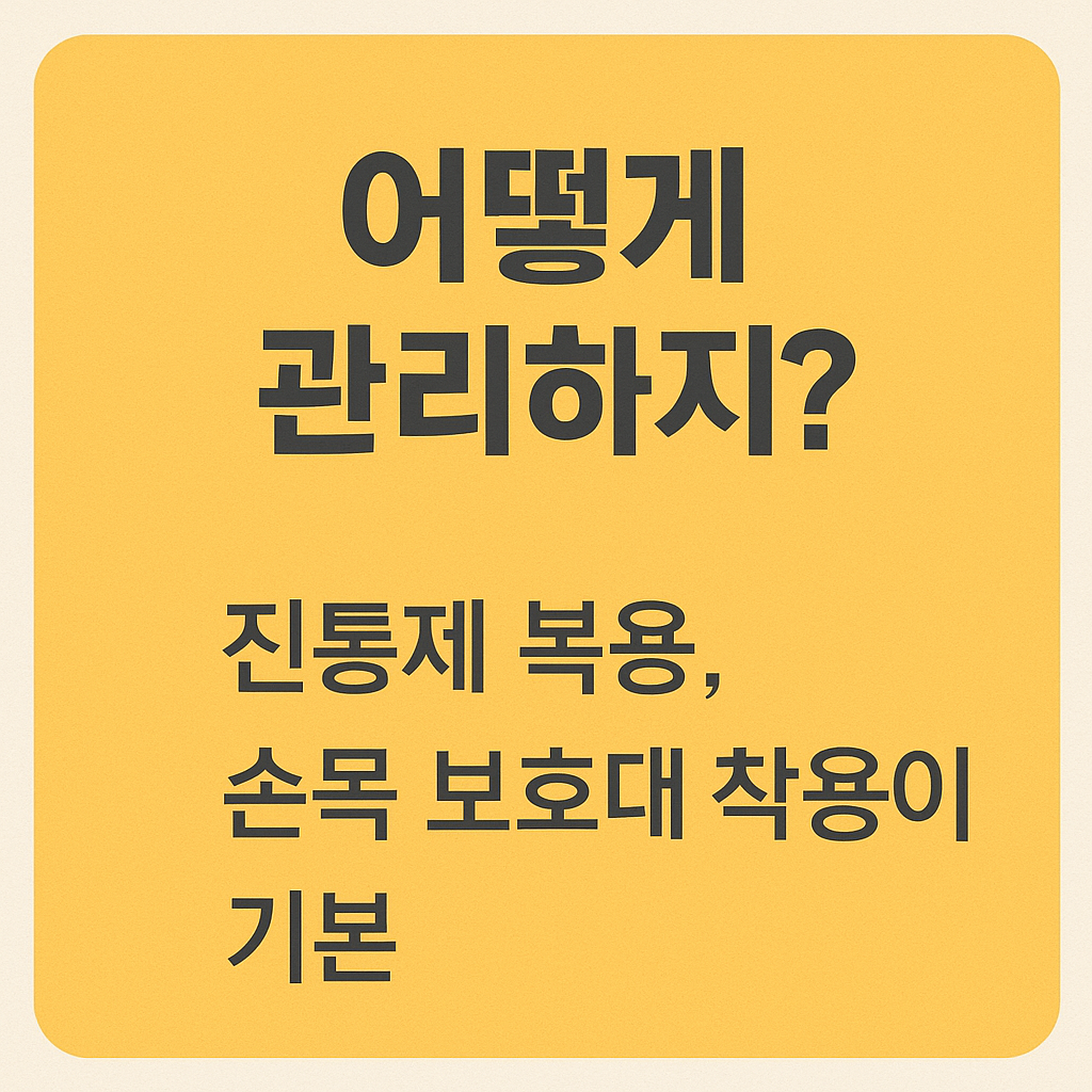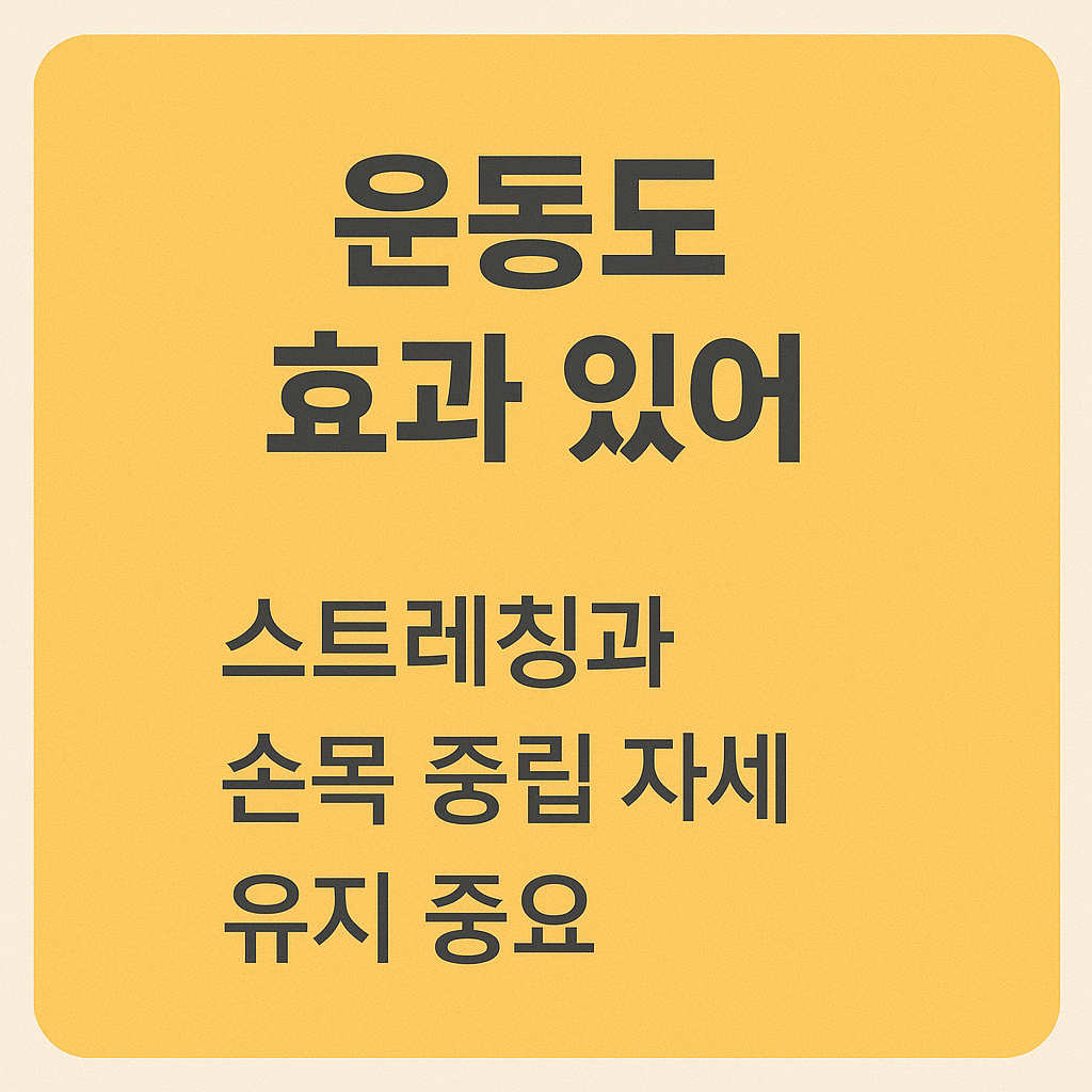 | 스트레칭 | 하루 2~3회 손목 굴곡·신전 스트레칭 시행 |