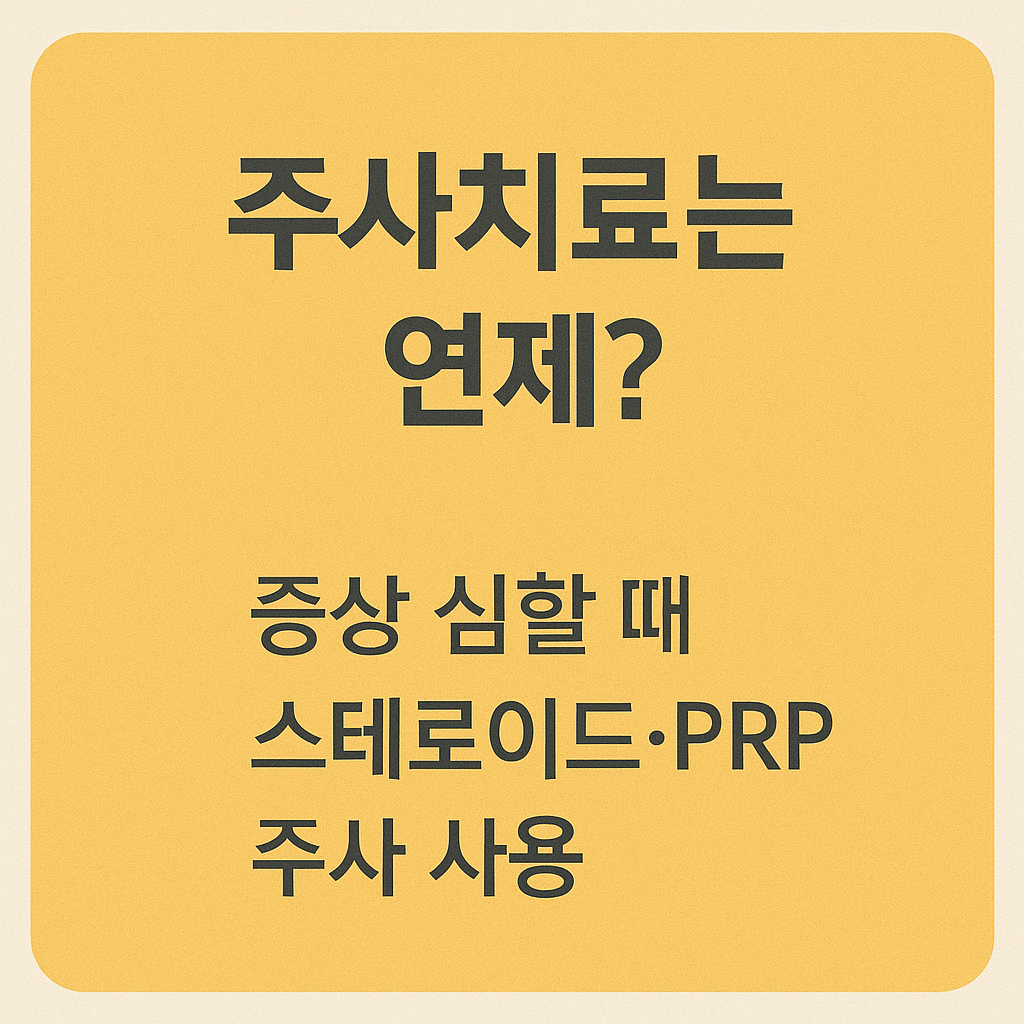 - 중등도: 물리치료, 국소 주사 병행