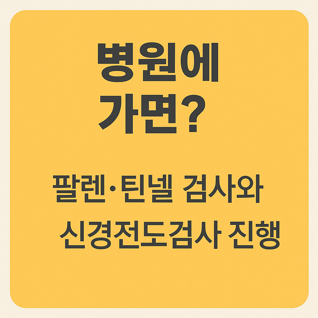 | 2. 이학적 검사 | 손목 두드리기(틴넬 징후), 손목 굽힘 유지(팔렌 검사) 등으로 증상 유발 여부 확인 |