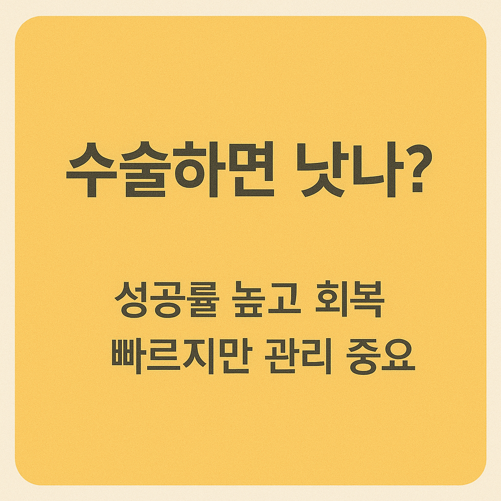 하지만 수술 이후에도 올바른 재활과 생활습관 개선이 병행되지 않으면 재발 위험이 남아있기 때문에, 수술 전 충분한 설명과 관리 계획이 중요합니다.