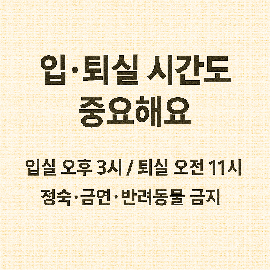 - 입·퇴실 시간 준수, 시간 초과 시 추가 요금