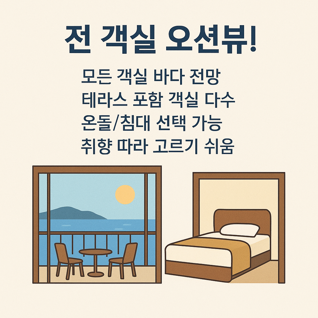 - 바다전망 옵션: 객실당 별도 선택 (추가 비용 발생 가능)