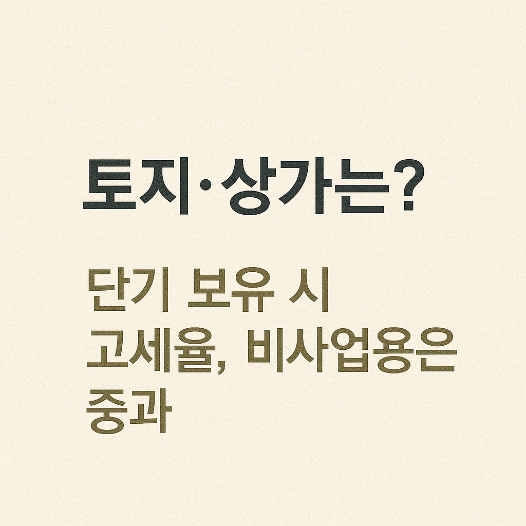 - 중과세율 적용 대상 – 조정대상지역 2주택 이상 보유자 – 단기 보유 자산(1~2년 미만 또는 1년 미만) – 비사업용 토지 또는 비사업용 토지로 간주되는 부동산