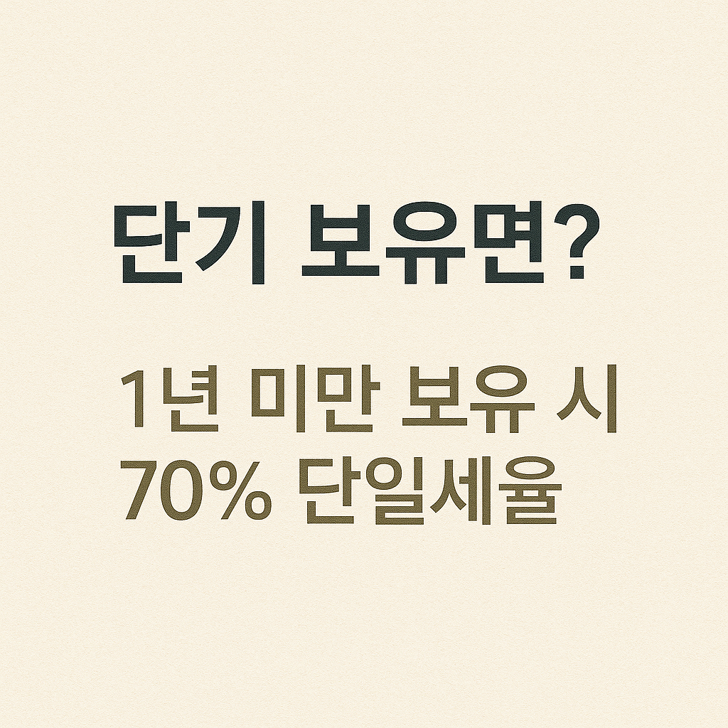 | 1년 미만 보유 | 주택, 토지, 상가 등 모든 자산 | 70% 단일세율 |