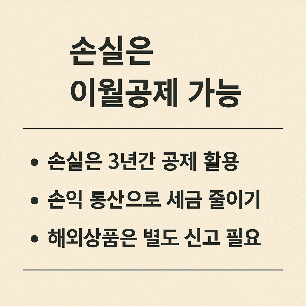 - 이월공제 및 손익 통산 적극 활용: 손실 발생 시 다음 해부터 최대 3년간 공제를 적용하고, 각 자산군 손익 통산 방식 이해