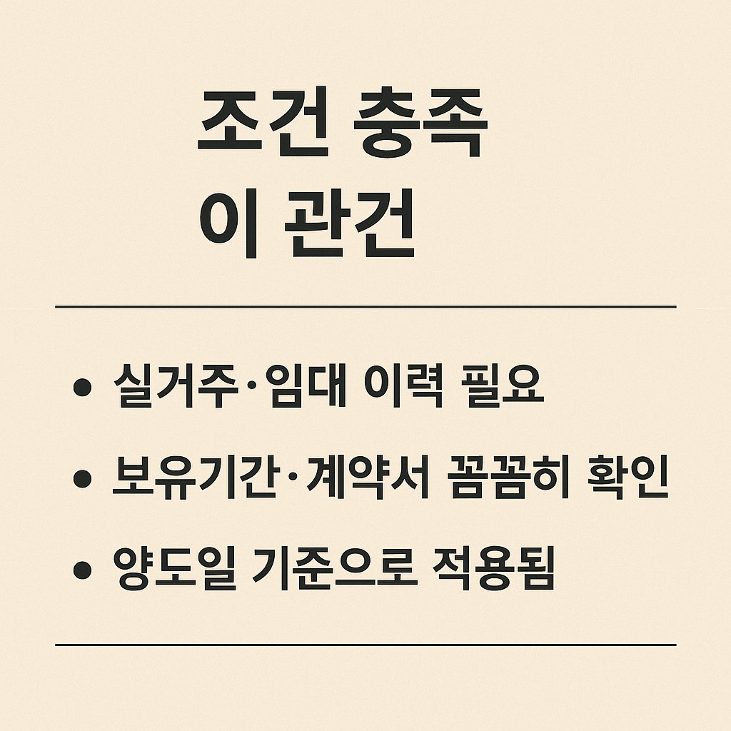 - 매도 시점 기준으로 요건 충족 여부 판단 → 양도일 전까지 최종 조건 점검 필요