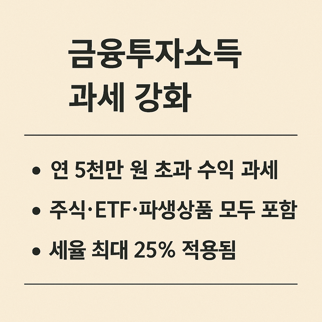 - 금융투자소득세 확대 및 주식 양도소득세 강화