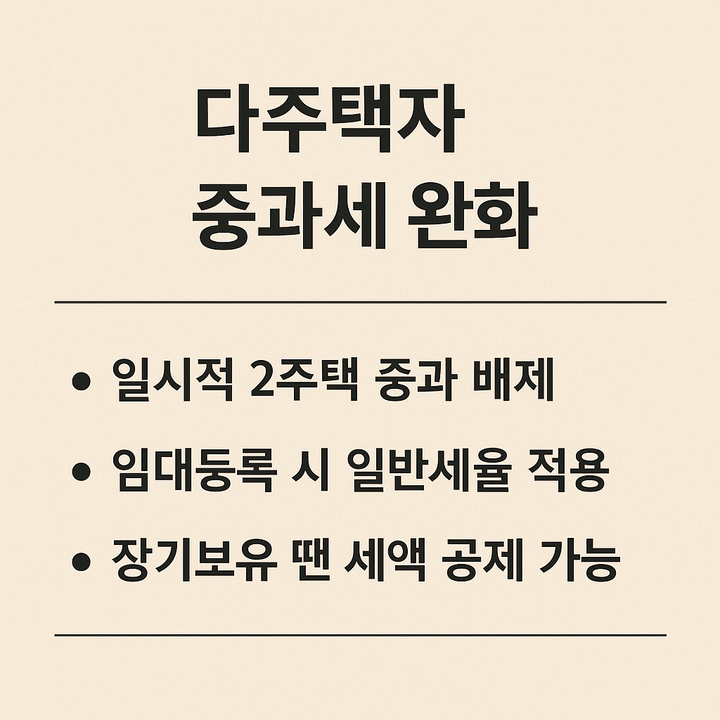 결론적으로 조건을 갖춘 다주택자는 기존 중과세율에서 벗어나 일반세율 기반 세금 부담으로 전환할 수 있으므로, 2025년 이전부터 철저히 준비하는 것이 핵심입니다.