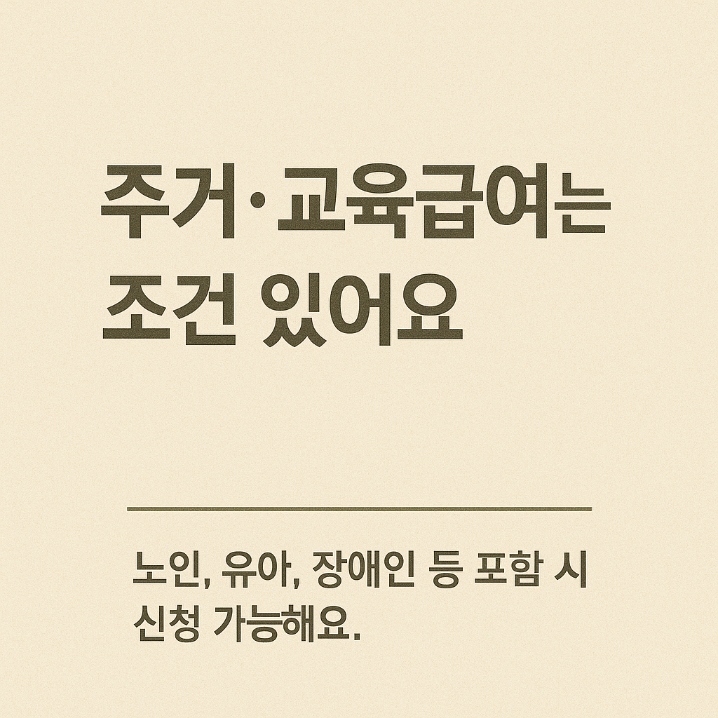 - 주거·교육급여 수급자: 세대원 특성(노인, 유아, 장애인 등) 필요