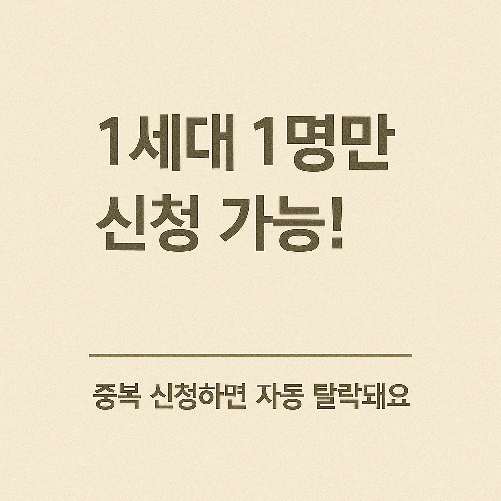 - 같은 세대 중복 신청 불가: 1명만 가능