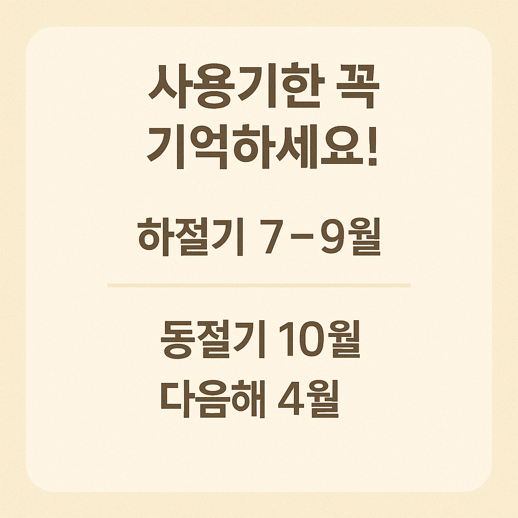 | 사용기한 | 하절기: 7.1~9.30 / 동절기: 10.16~4.30 |