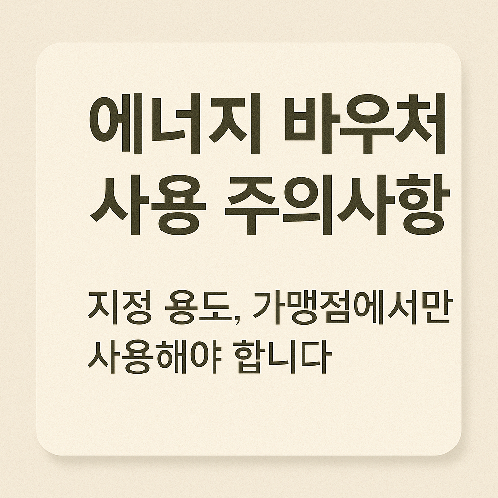 - 바우처는 난방비, 전기요금, 가스요금 등 지정된 에너지 비용에 한해 사용 가능합니다.