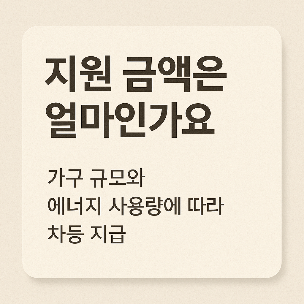 - 에너지 사용 유형: 난방 방식(도시가스, 전기, 등유 등)에 따라 차등 지급