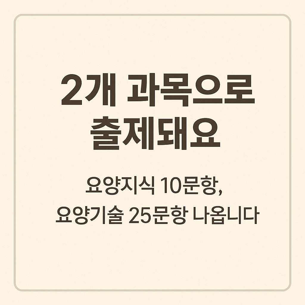 | 요양보호 관련 지식 | 10문항 | 노인장기요양보험 제도, 직무 윤리, 안전관리, 감염병 대응 |