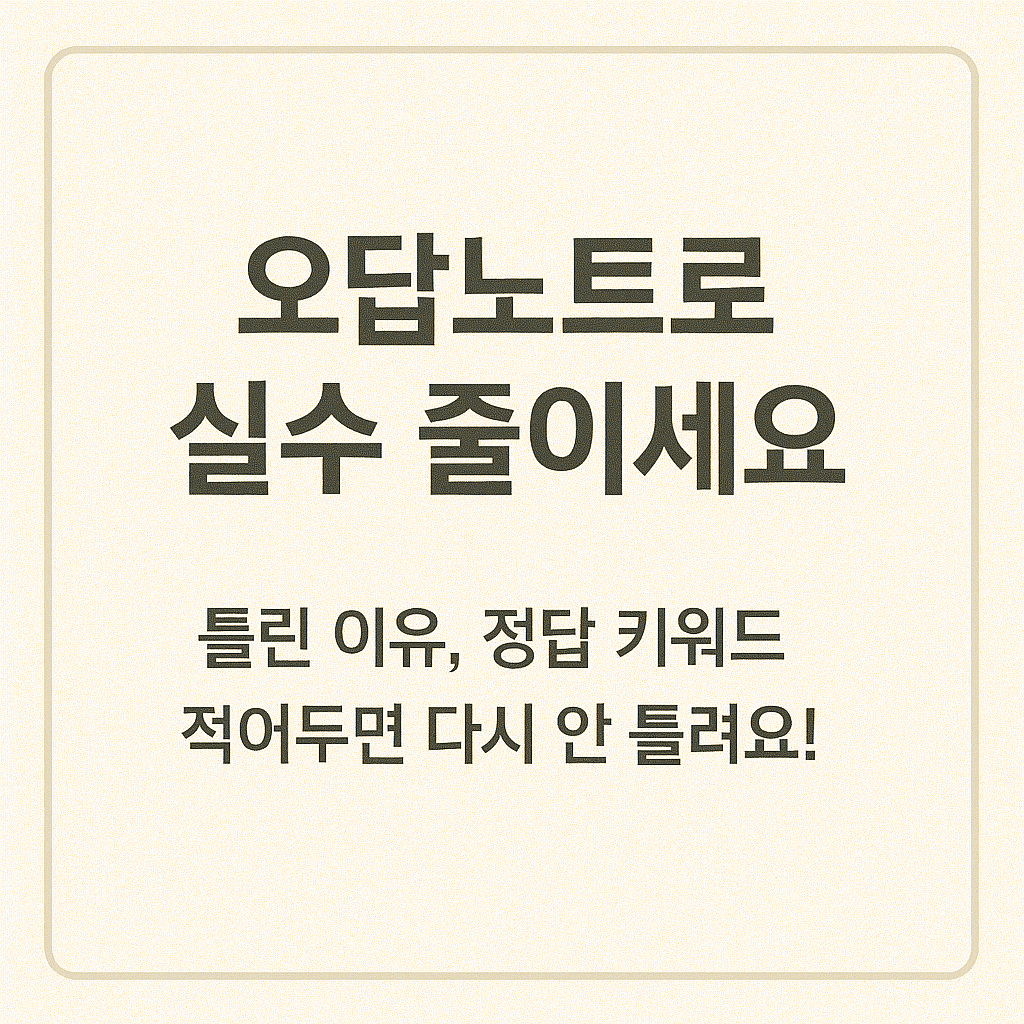 이런 오답 노트는 시험 전날 보기에도 효과적이며, 취약한 영역을 정확히 파악하게 해 줍니다.