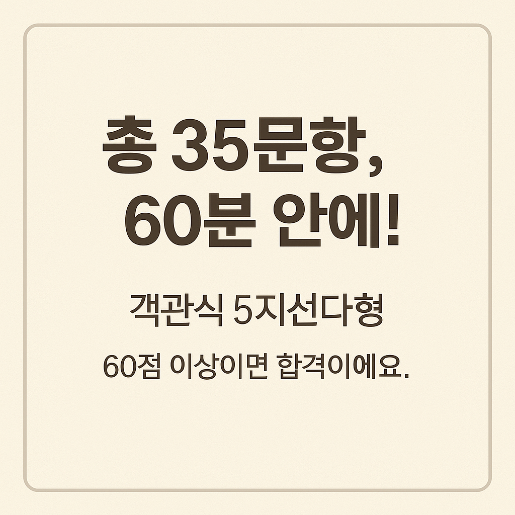 - 합격 기준: 평균 60점 이상, 과락 없이 통과