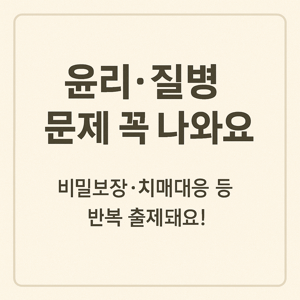 - 윤리 비중 강화: 개인정보 보호, 학대 예방 등 인권 관련 문제 증가
