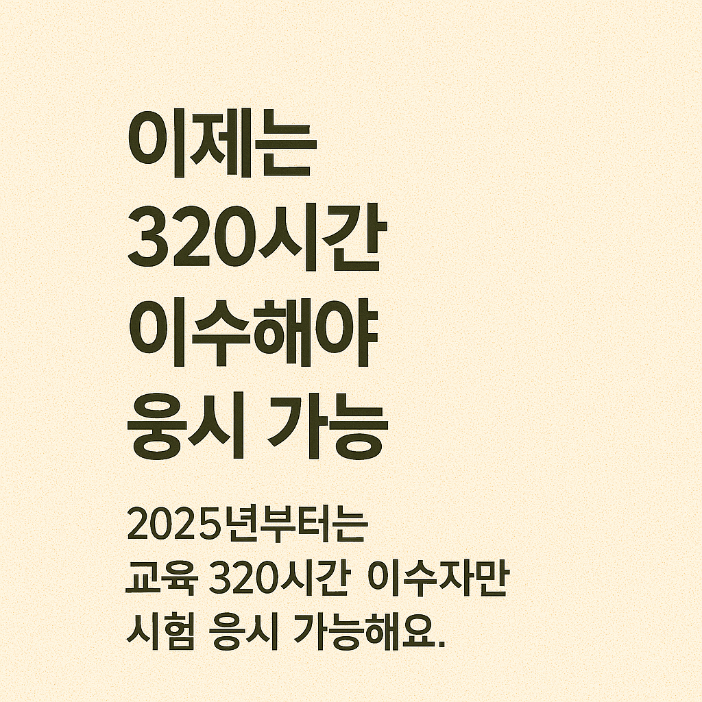 ※ 단, 2026년 이후에는 유예 혜택 없이 무조건 320시간 이수자만 시험 응시 가능하므로, 기존 수료자는 가급적 2025년까지 시험을 보는 것이 유리합니다.
