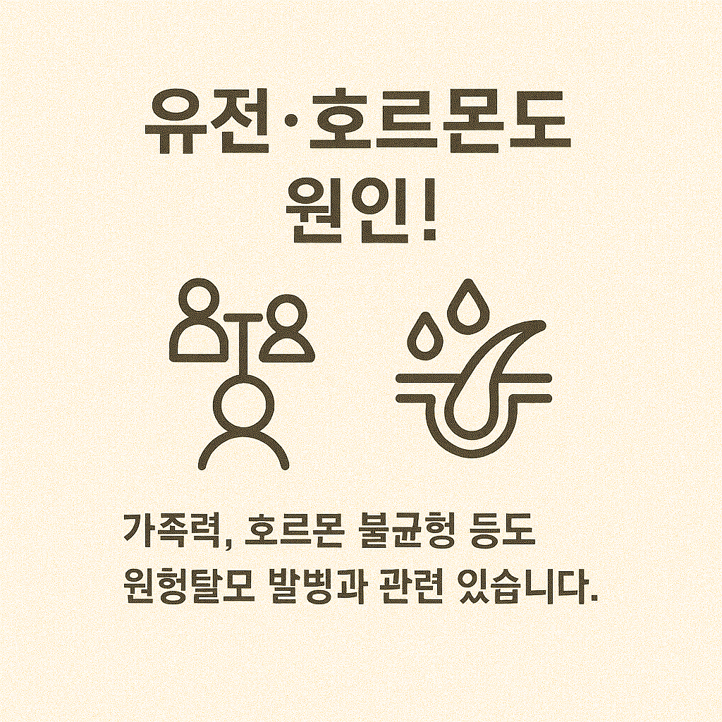 원형탈모는 자가면역 반응으로 발생하는 비흉터성 탈모로, 면역체계가 자신의 모낭을 공격해 모발 성장이 중단되면서 동전 크기의 탈모 병변이 나타납니다. 일반적으로 성인 2% 정도에서 발생하며, 남녀노소 누구에게나 나타날 수 있는 질환입니다 (). 이는 유전, 환경, 정신적 요인이 복합적으로 작용한 결과이며, 다음과 같은 주요 원인이 있습니다.