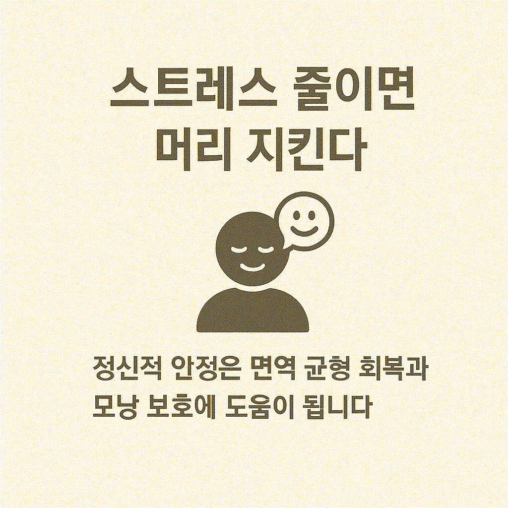 - 심리적 스트레스, 감정적 충격은 면역 시스템을 교란하며 탈모를 유발하거나 악화시킴 ()
