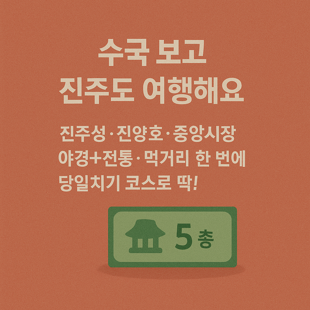- 진주 중앙시장: 국밥·수제어묵·약과 등 로컬푸드 즐기기 좋음
