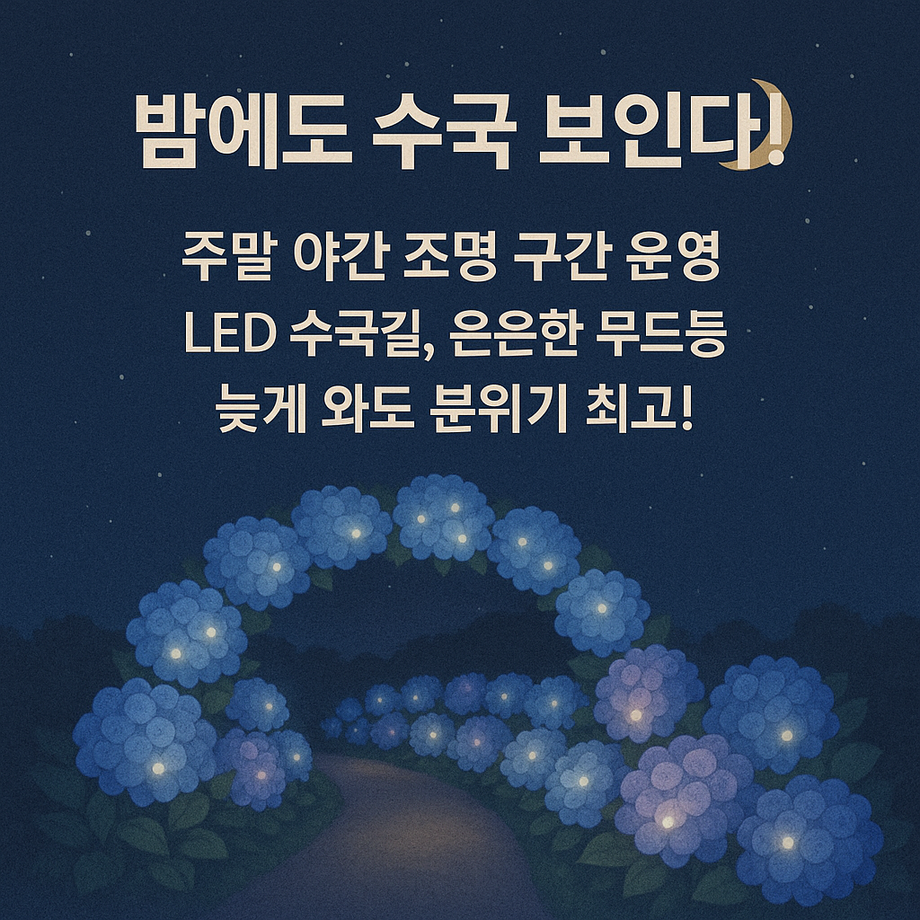 2025년에는 작년에 이어 야간 조명 구간도 확대됩니다. 평일보다는 주말 저녁 시간대에만 운영되는 이 구간에서는 LED 라이트, 간접조명 등을 통해 수국의 색이 더욱 선명하게 연출됩니다.