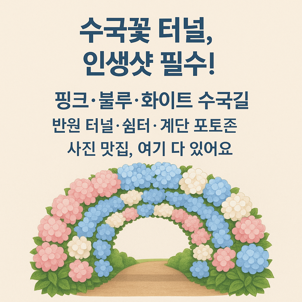 | 수국 반원 터널 | 핑크 수국으로 둘러싸인 반원형 아치. 커플 포토 명소로 인기 |