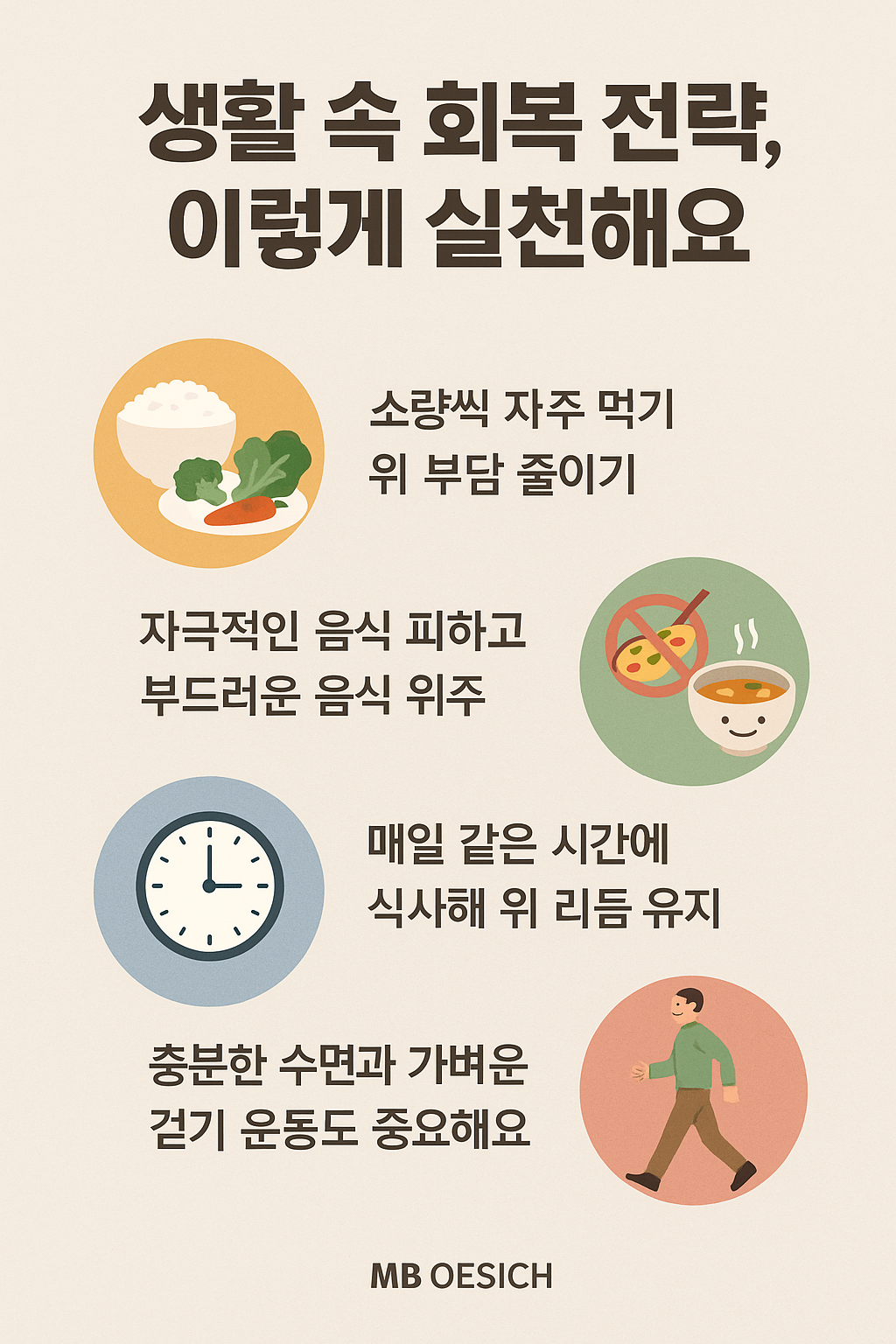 - 회복기에는 위에 부담 적은 식단과 영양 중심 식사 필수