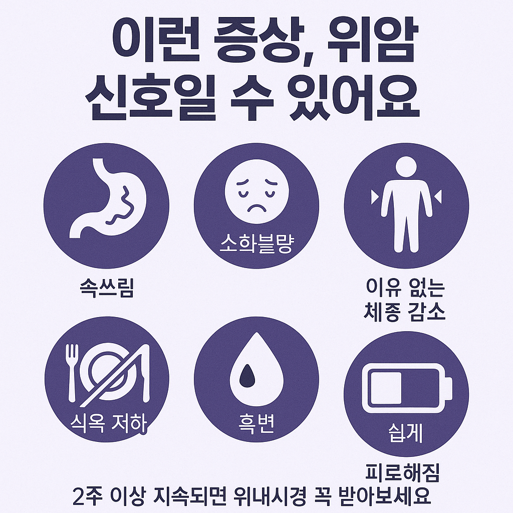 - 속쓰림, 체중 감소, 식욕 저하 등은 위암의 신호일 수 있음